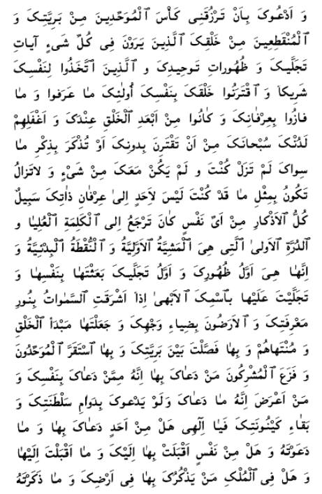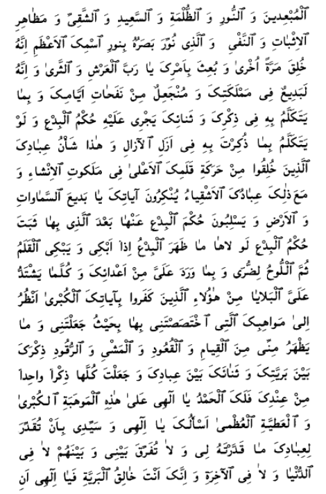 Given the extraordinary length of this translation (which is nearly four times the length of the translation of the Long Obligatory Prayer), I have added paragraph markers throughout the text to allow for easier reference.