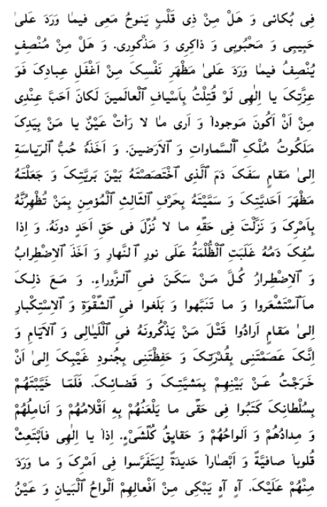 The lust of leadership prompted that wretched one[1] to shed the blood of him [Dayyán] whom Thou didst single out amidst Thy people, didst make the quintessence of Thy majesty, and didst name “the third Letter” to believe in the one Thou didst make manifest at Thy bidding.[2] Thou didst reveal in the honor of that noble soul such things as have never been revealed for any one apart from him. And when his blood was shed, every trace of daylight was overtaken by darkness. Agitation took hold of every soul living in Baghdád, and they all were thrown into dire straits. Despite this, however, the perpetrators of that heinous crime failed to realize what they had done, and their wickedness and haughtiness waxed greater and greater until they sought to slay the One of Whom they had made mention in the daytime and in the night season. Yet, Thou didst indeed preserve me by the power of Thy might, and didst protect me with Thine invisible hosts, in such wise that I was able—through Thy will and decree—to depart from the midst of those wicked souls. And when Thou didst frustrate their hopes through the power of Thy sovereignty, they wrote against me such vile things as caused their own pens, their fingers, their ink, their scrolls, and in truth the reality of all things to curse them. Raise up, then, O my God, pure hearts and discerning eyes, that they may look searchingly into Thy Cause and observe carefully what hath befallen Thee.